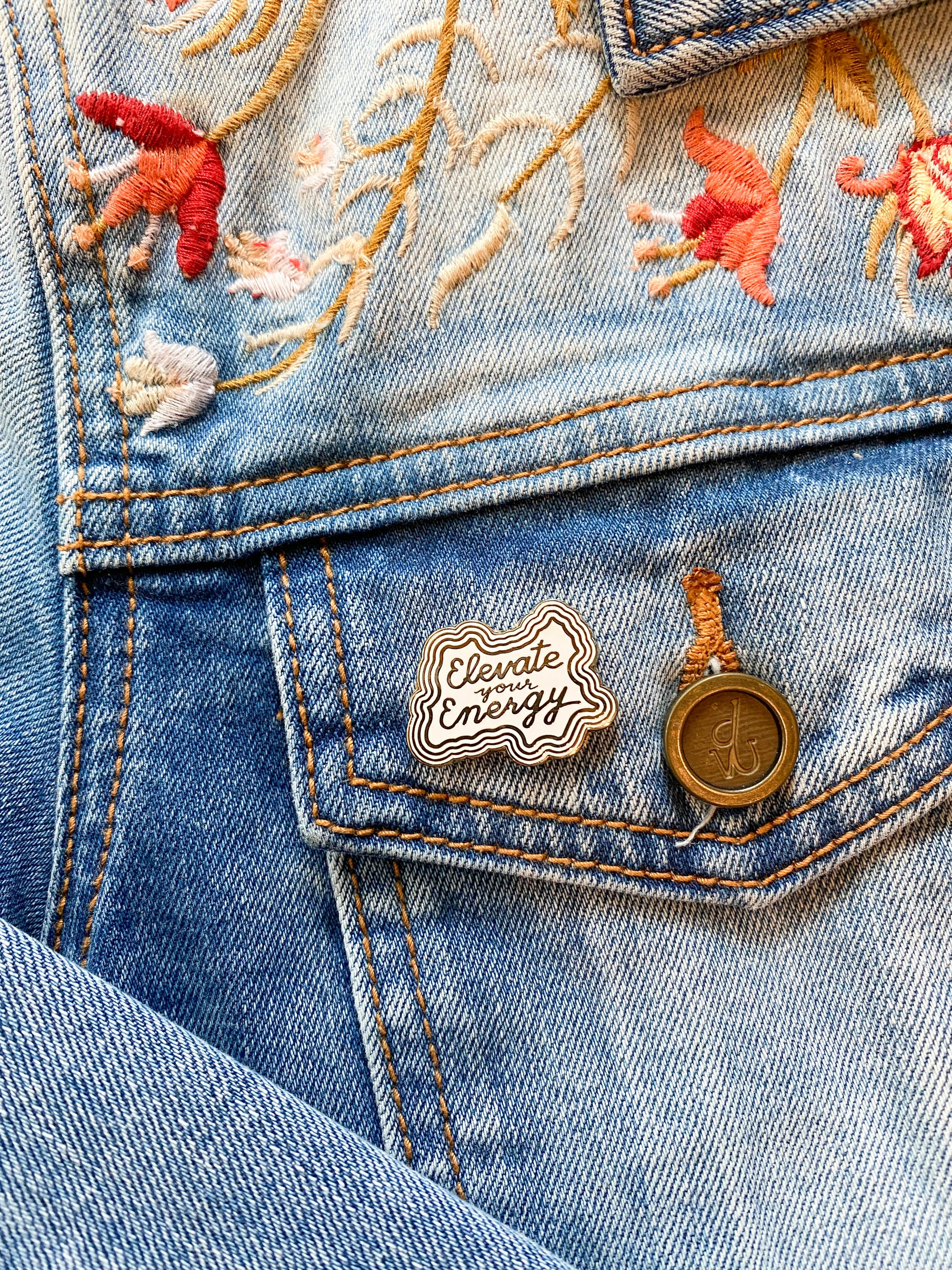 This enamel "Elevate Your Energy" pin will remind you to rise above whatever your day brings.