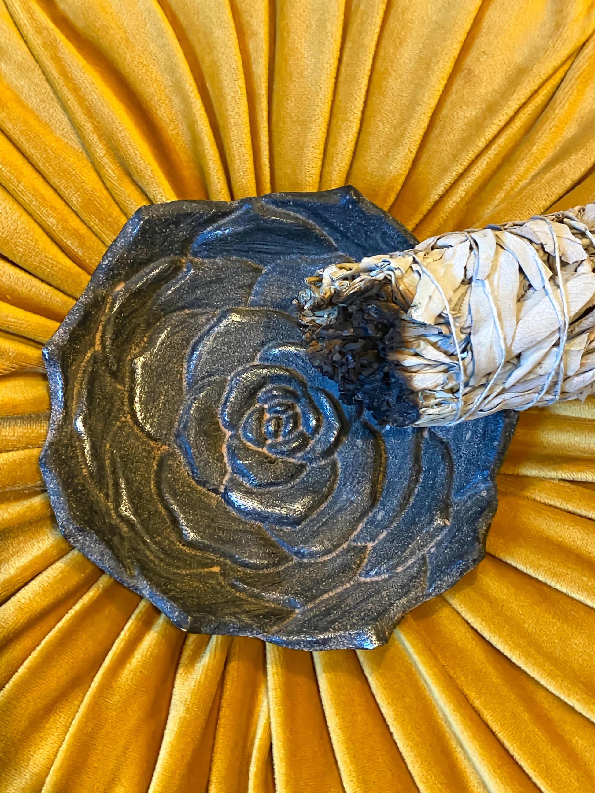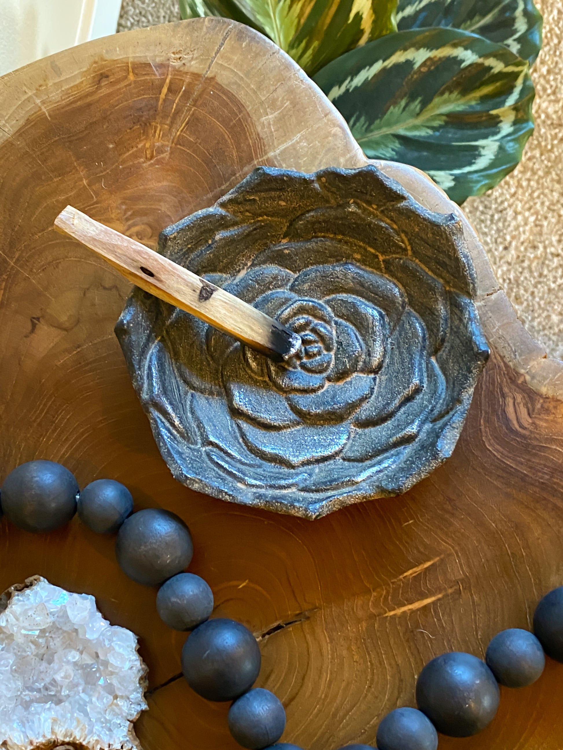 It can be also be used as a smudge dish to catch your ashes as you clear your home of those negative energies.