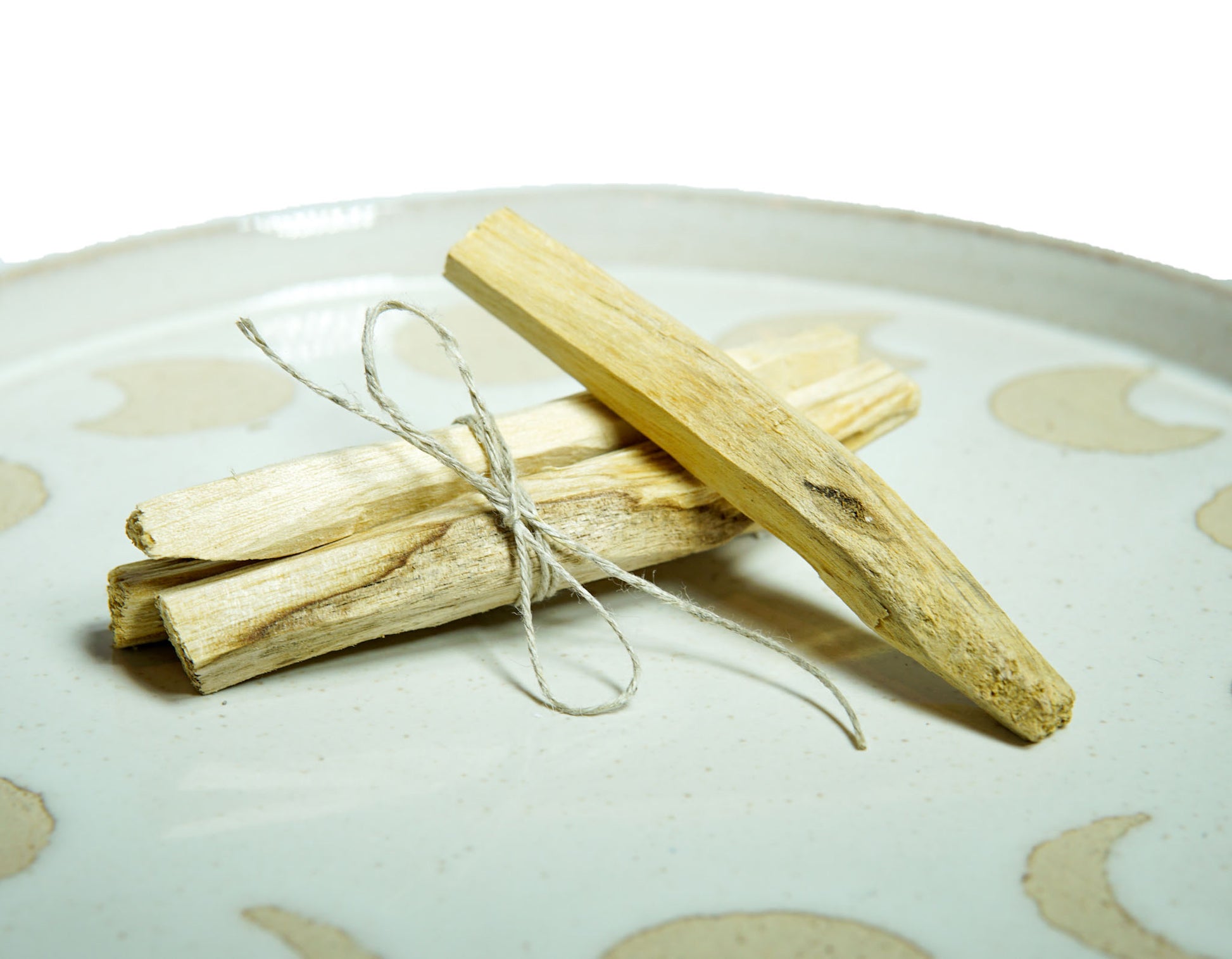 -Light your Palo Santo until a flame holds. Gently blow out the flame. Have a bowl or shell underneath to catch any fallen embers.