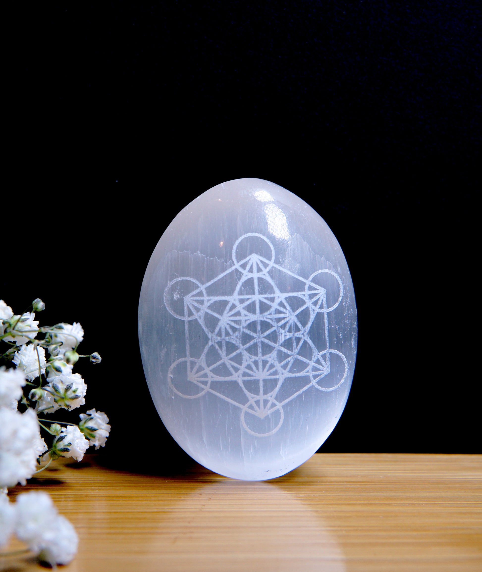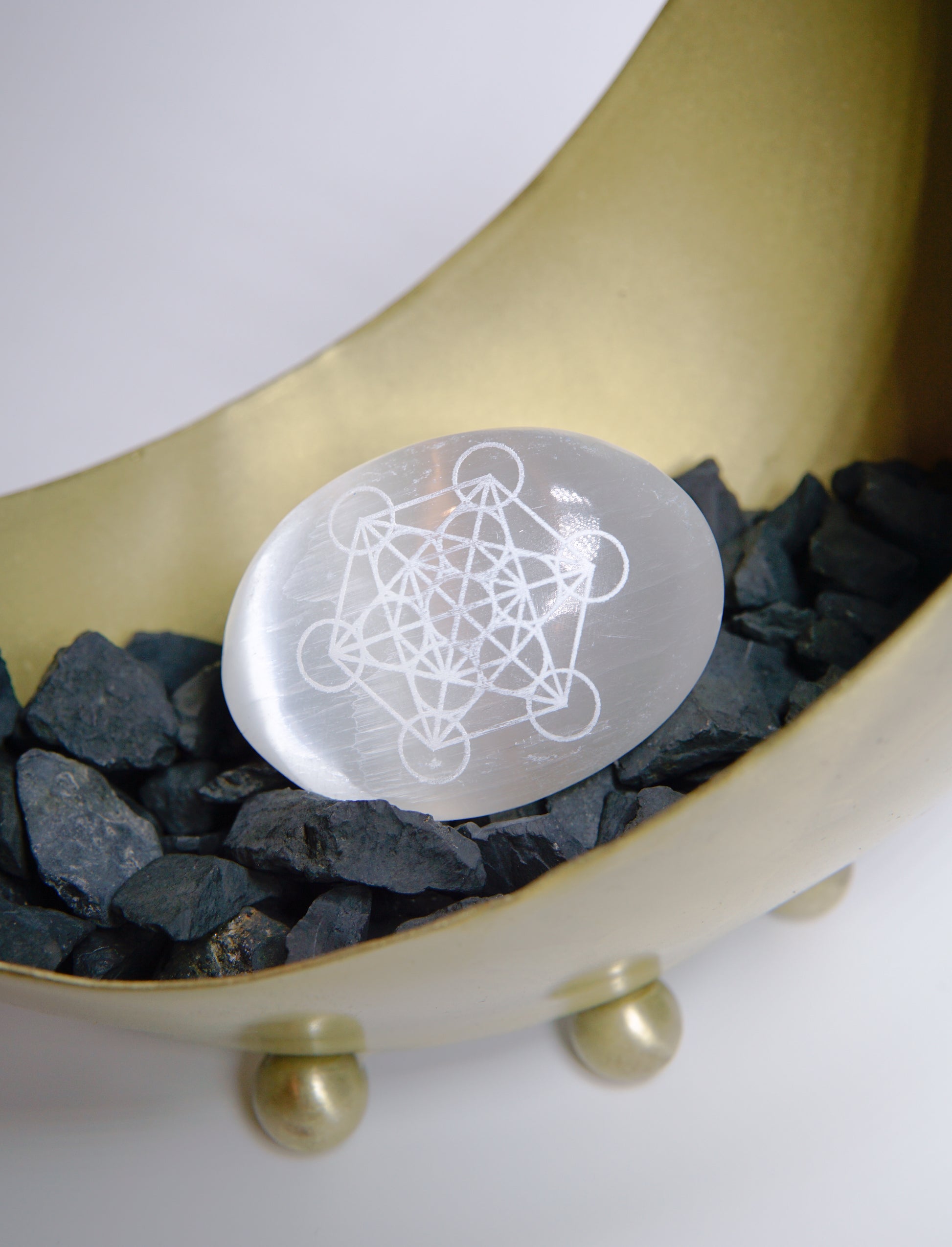 Metatron's Cube represents the flow of energy and connection among all living things. When intentionally activated, it spins with energy protecting the field around you. Named after Archangel Metatron, the one who guards.