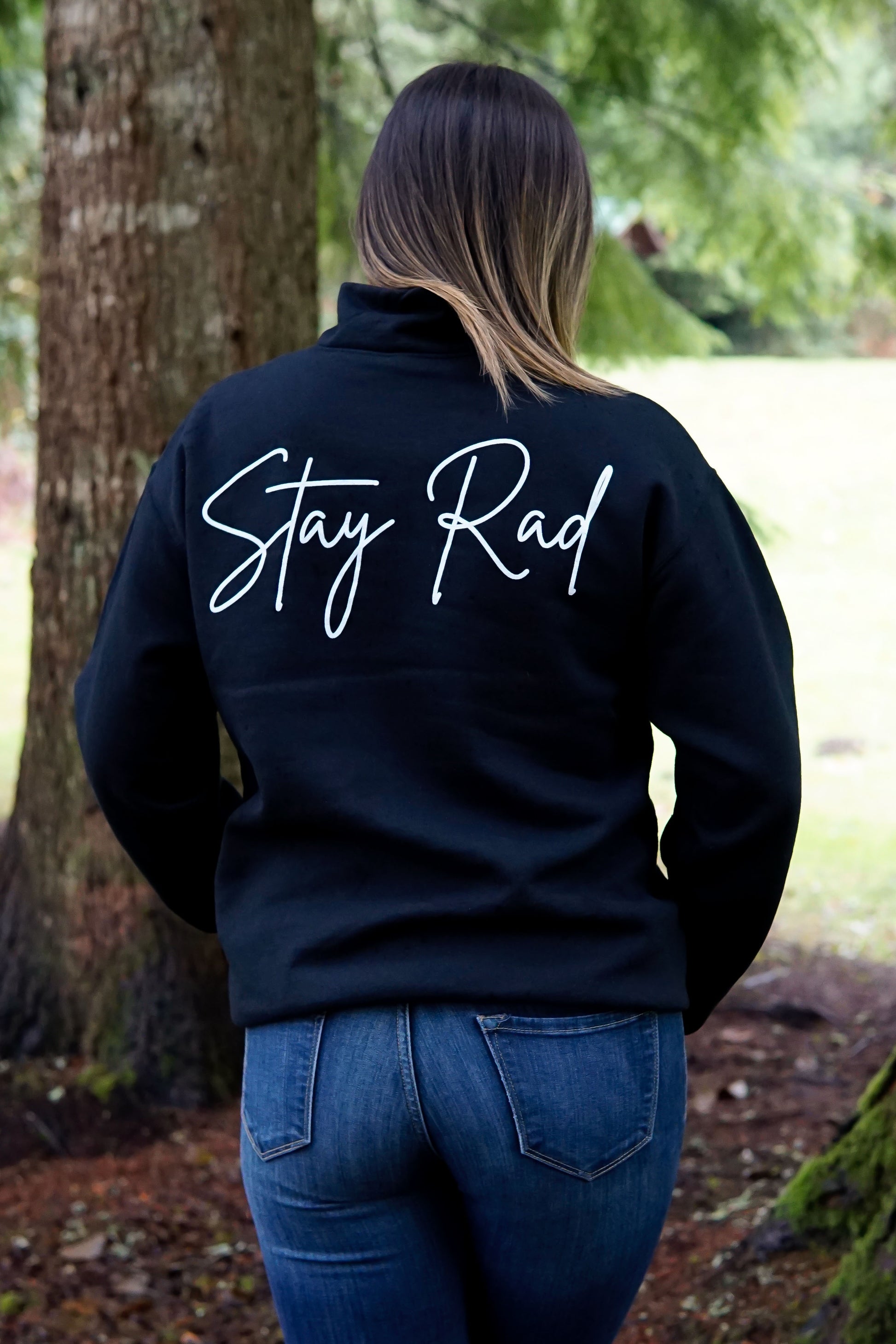 The perfect everyday sweatshirt! Screen printed with our OG Rad Moon Mama logo on the front left pocket and ‘Stay Rad’ on the back.